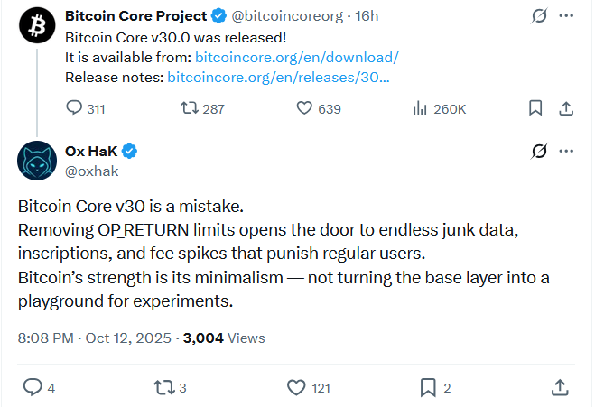 Bitcoin Core V30 Officially Launches To Mixed Community Reaction