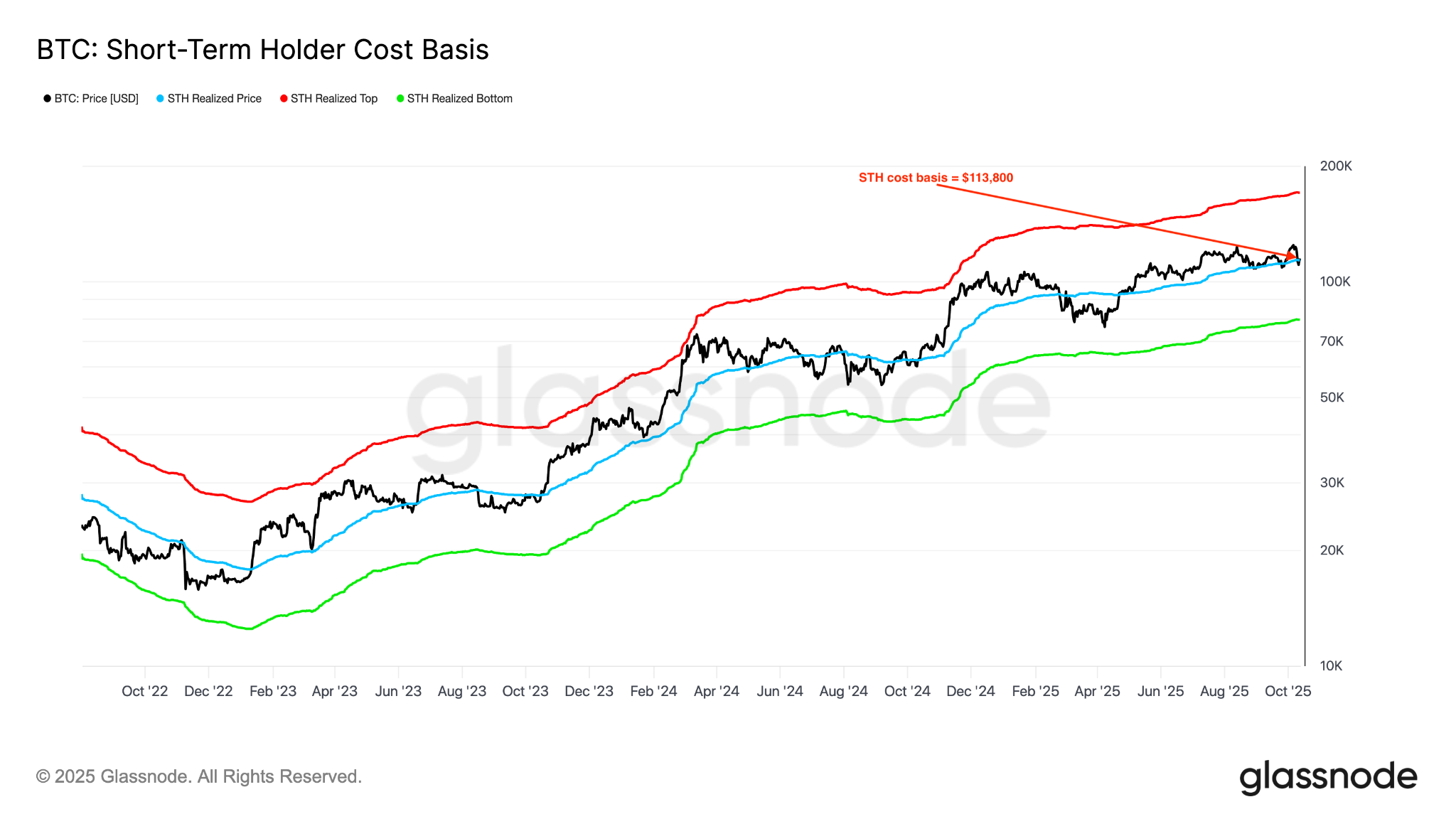 Bitcoin traded above short-term holder cost basis at $114,000, signaling recovering demand and potential for further gains.