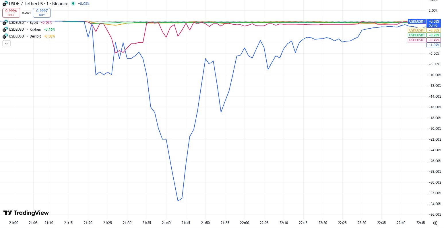 USDe’s price drop on Binance compared with other exchanges. Source: TradingView