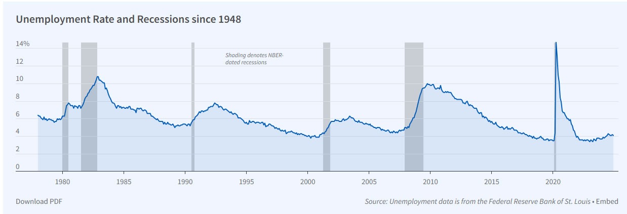 The 2001 business cycle downturn, also known as the “dot-com bubble,” saw increasing unemployment and a 50% fall in the US stock markets (S&P 500) over two years. It was triggered by the collapse of overvalued tech companies and excessive speculation.