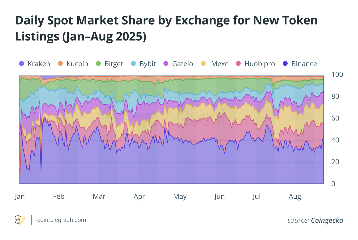 Beyond payments, exchange competition has reshuffled in the face of this stablecoin expansion. HTX’s new “Verified Station”, launched in Aug. 2025, curates OTC merchants with “zero-freeze” histories. It pairs this with a 0-freeze, 100% reimbursement policy of up to 10,000 USDT for stablecoin off-ramps. According to CryptoQuant, as of mid-Aug 2025, HTX’s YTD spot trading volume for new listings reached $38B, ranking first among “second-tier” exchanges and accounting for 22% of daily new-coin trading. Binance led with $133B, followed by Bybit ($35B) and MEXC ($34B).
