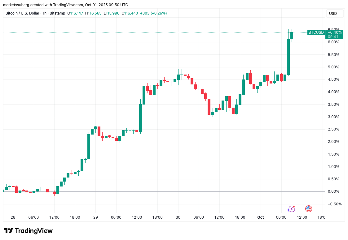 Bitcoin and Gold Move in Step as BTC price Jumps, Eyeing $117,000 Next