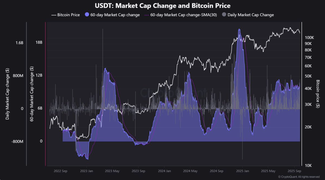 USDT market cap change vs. Bitcoin price. Source: CryptoQuant