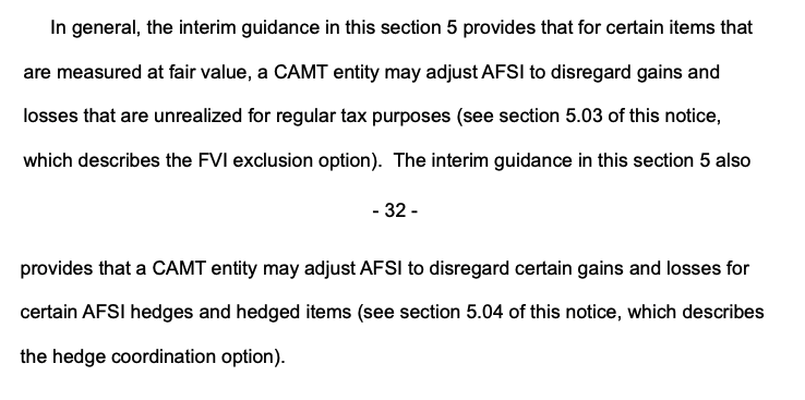 It particularly details amendments to Adjusted Financial Statement Income (AFSI), allowing digital asset companies to exclude unrealized gains and losses on digital assets held as fair value assets from CAMT income.