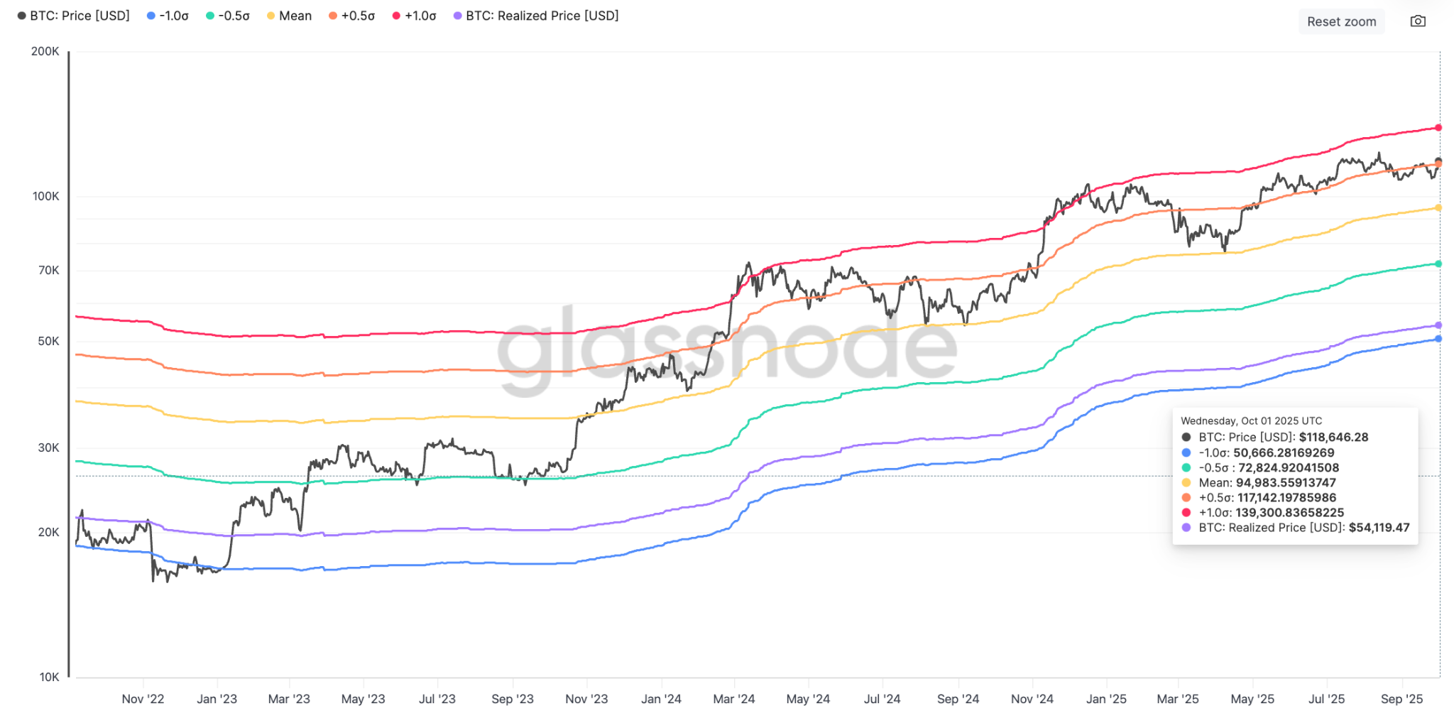 Bitcoin’s MVRV extreme deviation pricing bands suggest that after BTC price broke past $117,000, it could expand further before the unrealized profit held by investors reaches an extreme level, or the uppermost MVRV band at $139,300, as shown in the chart below.