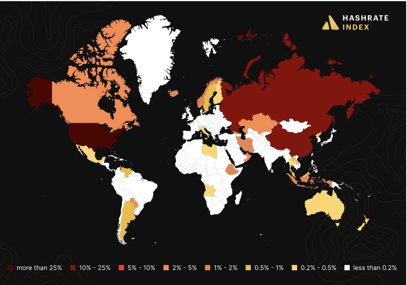According to the Hashrate Index, the United States accounted for 36% of the global Bitcoin hashrate — the total computing power miners use to secure the network, making it the world’s largest mining hub.