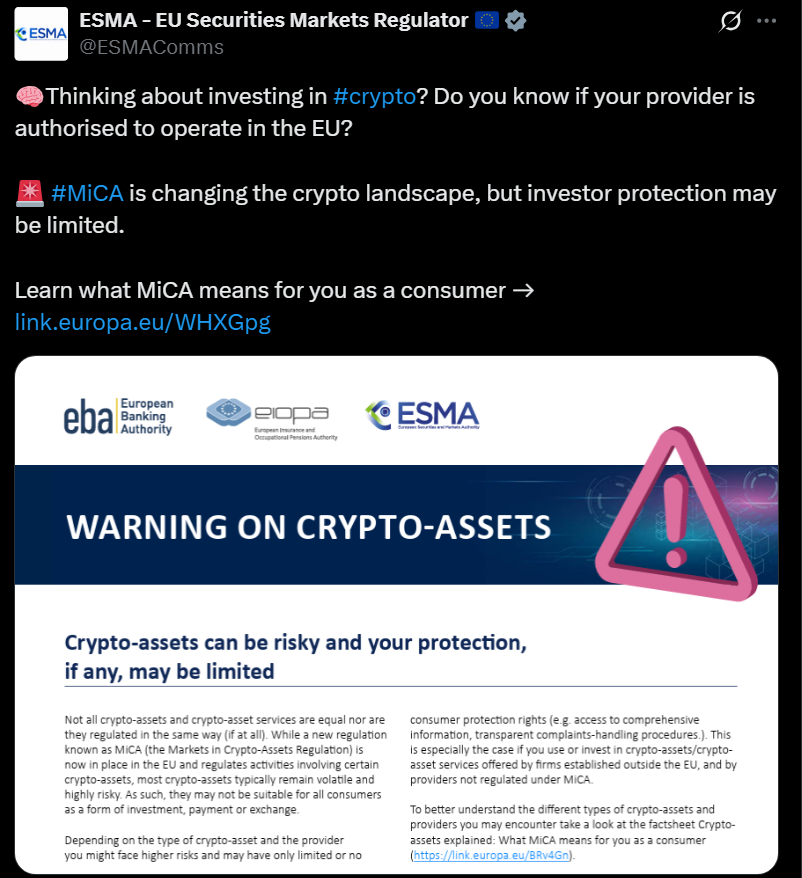 Efforts by ESMA to streamline and unify crypto regulation are colliding with growing tensions among EU member states over the so-called “passporting” rule — a key feature of the MiCA framework that allows companies licensed in one country to operate across the entire bloc without needing separate approvals.