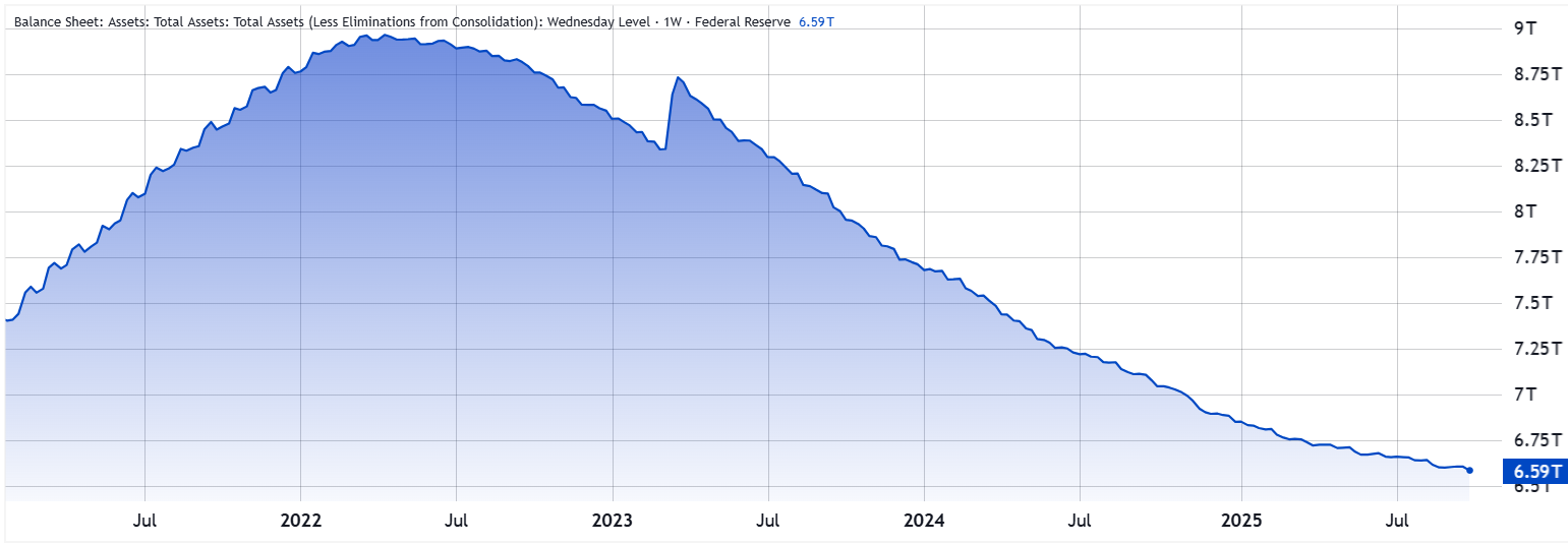 Another difference comes from a tightening policy that prevailed throughout 1999. The Fed balance sheet contracted to $5.38 trillion by early 2000 from $8.66 trillion the year prior. Today, the script is reversed: the Fed is unlikely to shrink its balance sheet for the next 12 months, especially with signs of softening in the labor market, offering speculative momentum and an extended runway.